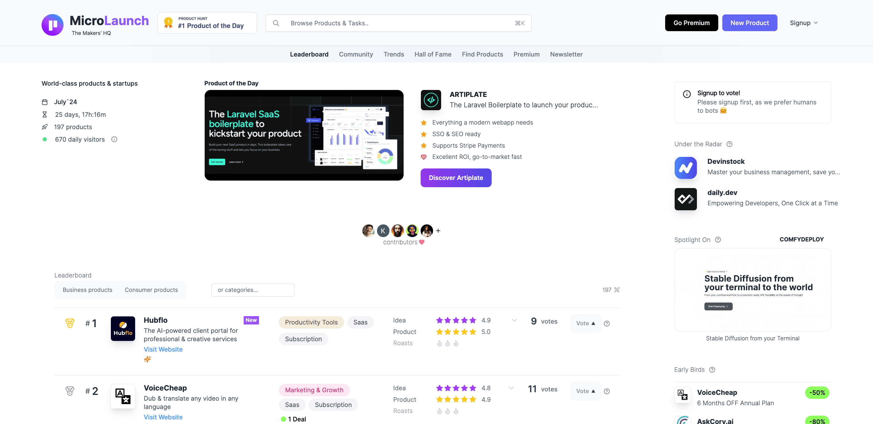 A modern launch platform for early products: get feedback, traction and first customers over a month. Both ideas and product are scored separately. Your products get eventually roasted or boosted.