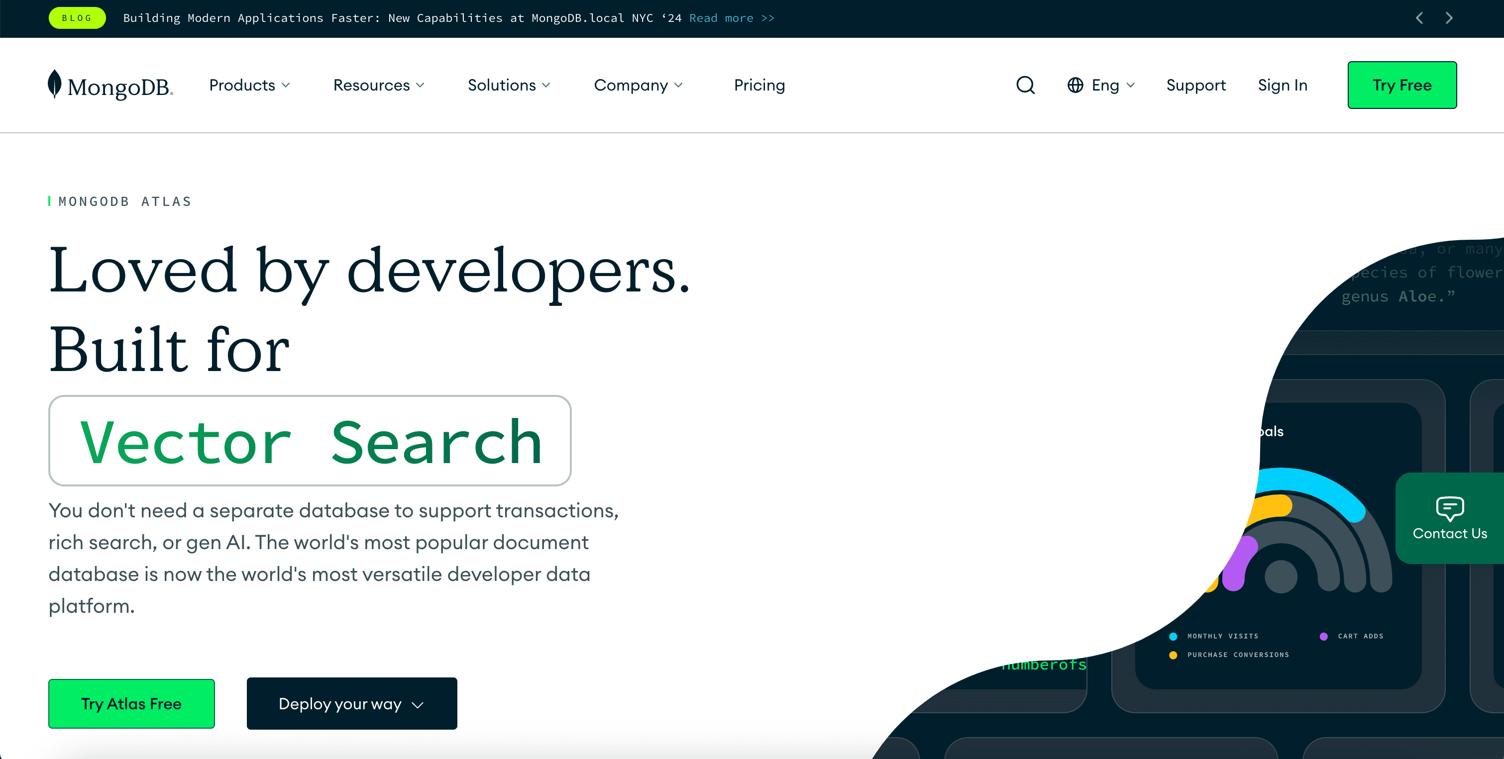MongoDB cloud services consist of a comprehensive suite of data products that accelerate and simplify how you build with data for any application. With Atlas Database (the Database-as-a-Service for MongoDB), Search, and Data Federation, you can serve any class of workload through a common API. Additionally, bidirectional sync between Atlas and Realm allows you to extend your cloud backend to the edge and mobile devices.