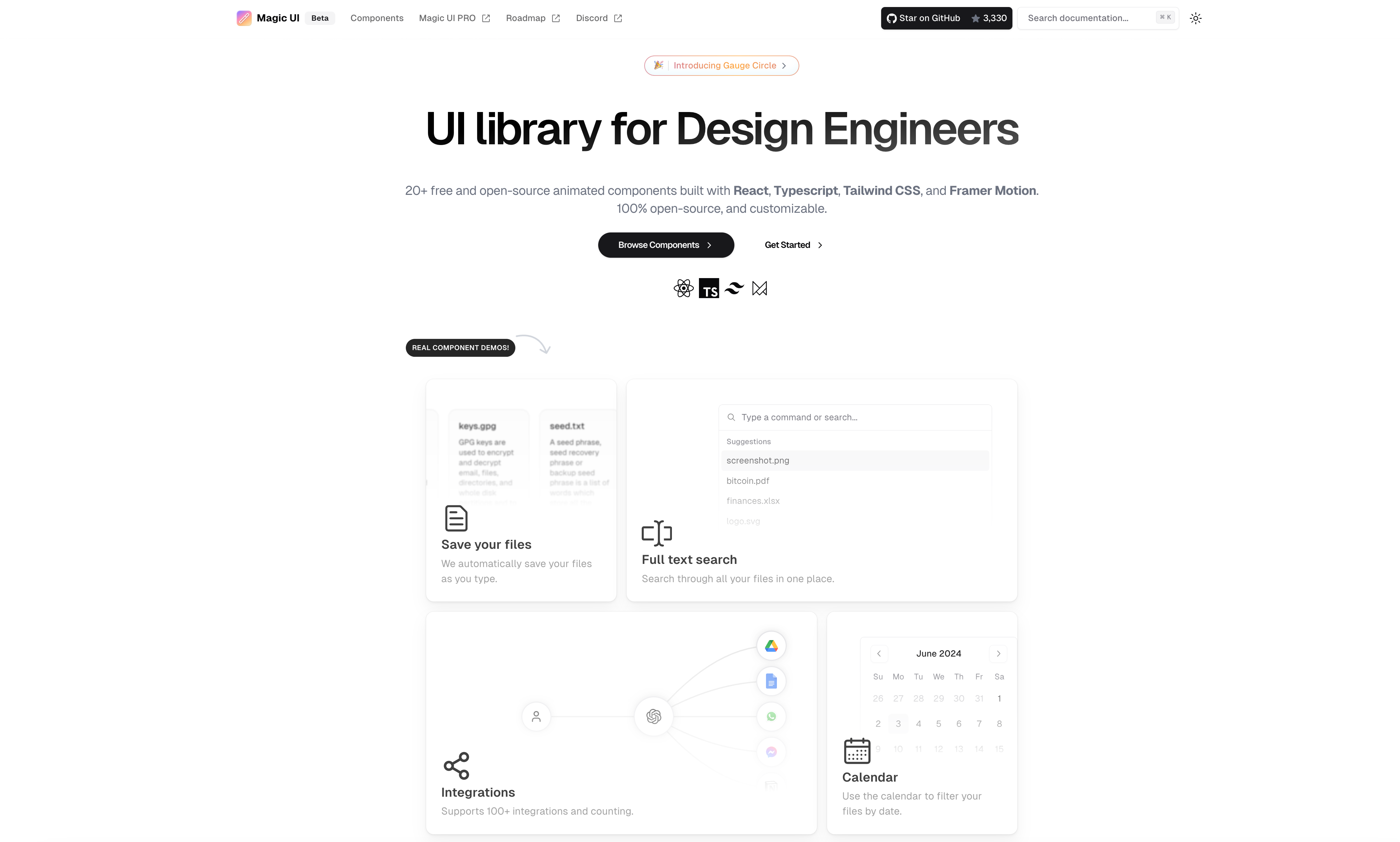 20+ free and open-source animated components built with React, Typescript, Tailwind CSS, and Framer Motion.