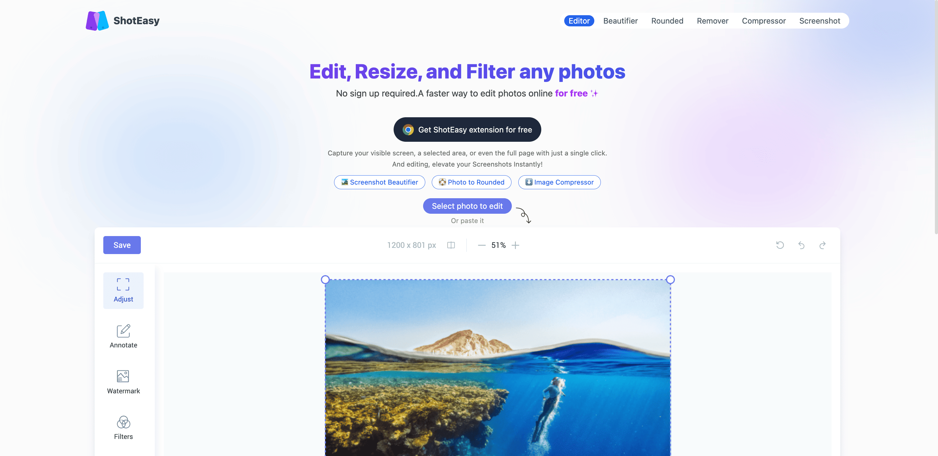 Photo edit online for free, resize, and filter any photos, edit photo on browser, convert image to jpg/png/jpeg/webp, easy to screenshot area or full page